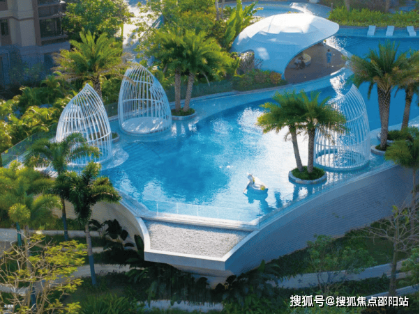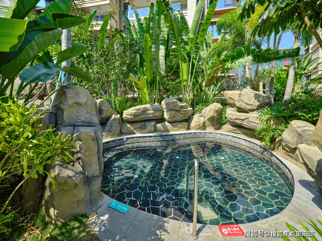 际泳池、天然温泉泡池、叠水瀑布、景不雅水系