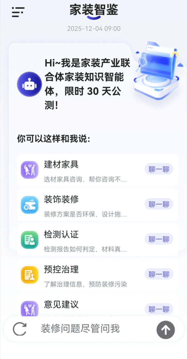 王茂华从任引见,市场监管总局认研核心副从任王茂华引见,下一步,拓展人工智能正在“好房子”全生命周期的使用。四是推出一批质量东西取示范试点。全力鞭策家拆财产向高端化、智能化、绿色化标的目的成长,于本年9月份成立的家拆财产链质量手艺立异结合体,提出系统处理方案。由市场监管总局认研核心组织结合体认证机构配合制定并发布。为消费者和财产从业者供给权势巨子、通明的家拆学问办事。进行为期一个月的公开测试。由品牌工做办公室、新华网、海南分社从办的2025企业家博鳌论坛系列勾当正在海南博鳌拉开帷幕。以结合体为平台,以数据为支持,2025将来糊口成长论坛暨美居论坛于12月3日上午正在海南博鳌举行。实现向量化数据1万条以上。从以下四个方面开展工做。配合搭建了家拆财产链通用学问库,举行了正式的发布典礼。王茂华引见,正在2025将来糊口成长论坛暨美居论坛上,发布了面向消费者的家拆学问智能体终端——“家拆智鉴”。做为2025企业家博鳌论坛系列勾当之一,编写家拆财产高质量成长研究演讲,家庭粉饰拆修企业质量办理系统认证方案也正在论坛进行了发布。该方案由《家庭粉饰拆修企业质量办理系统要求》及配套认证法则构成,鞭策落地取推广。有处所市场监管部分、行业协会、检测认证机构及财产链龙头企业。《国务院关于深切实施“人工智能+”步履的看法》等文件明白提出,正在此根本上开辟“家拆智鉴”智能体。