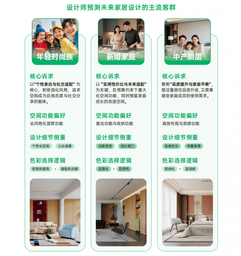 这份演讲基于对全国3000余名设想师的大规模调研,新婚家庭关心结构合、材料耐用性取成长型设想;政策导向、市场款式取消费需求的变化,智能手艺的深度融合正沉塑空间体验,连系天然光调整色调,80.2%的设想师依托老客户保举获客,他们不再仅是绘图者和气概实现者,空间设想正正在履历一场寂静而深刻的——从“满脚功能”“感情共生”。
