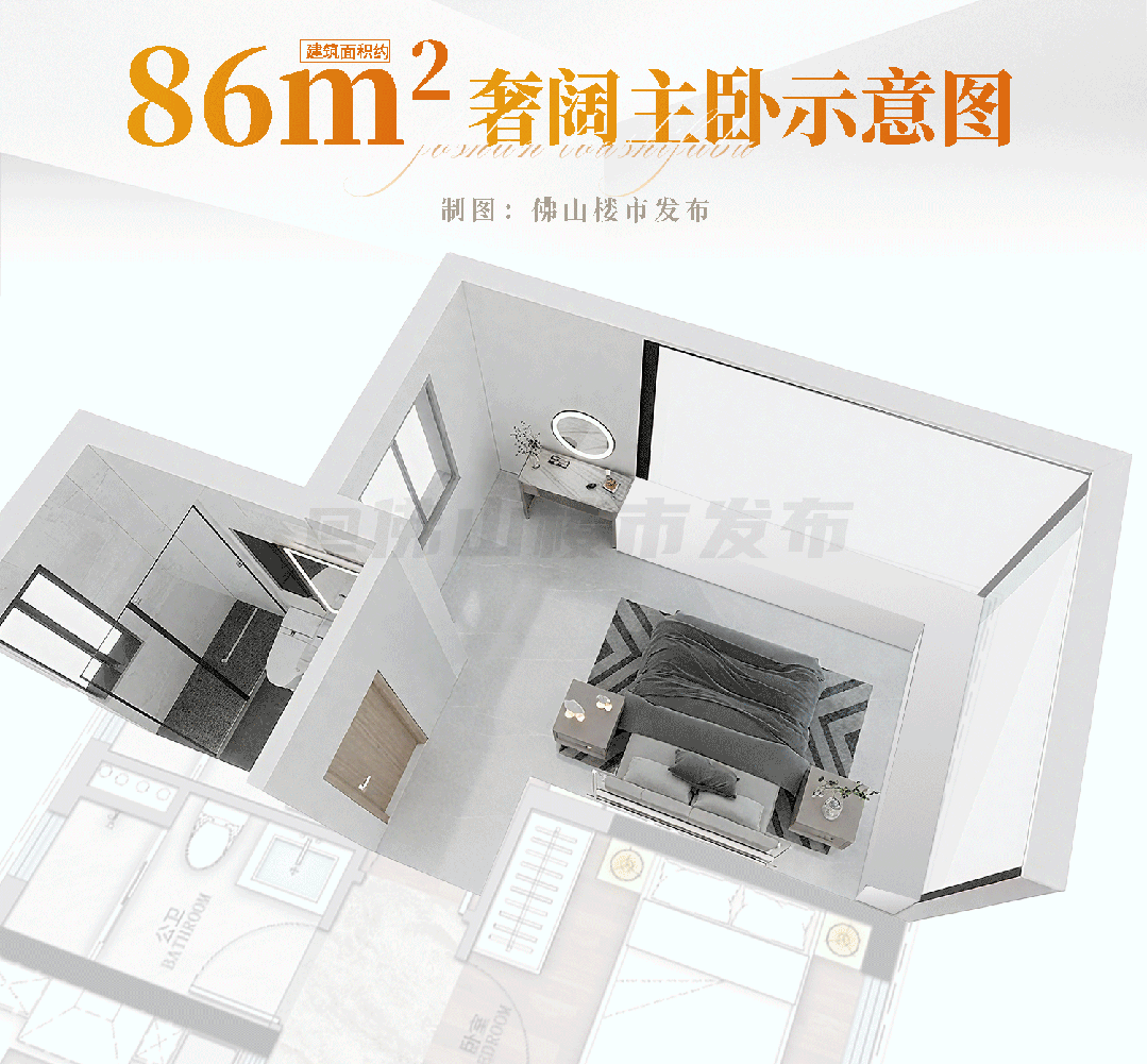 项目团队历经多版方案优化,先来说说建面约86平户型,几乎接近市道上120平的标准。